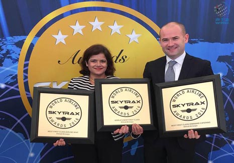 ABU DHABI, 13th July 2016 (WAM) - Etihad Airways has received three highly coveted awards for the World’s Best First Class Airline, World’s Best First Class Onboard Catering, and World’s Best First Class Airline Seat for its First Apartments and Suites, at the annual Skytrax World Airline Awards announced yesterday at the Farnborough Airshow in the United Kingdom.
