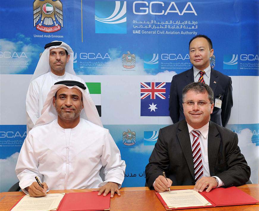 Abu Dhabi, April 8, 2013 (WAM) - In line with its strategic objective, the UAE General Civil Aviation Authority (GCAA) has signed a Memorandum of Understanding (MoU) with the Department of Infrastructure and Transport of the Commonwealth of Australia on the 1st of April 2013.