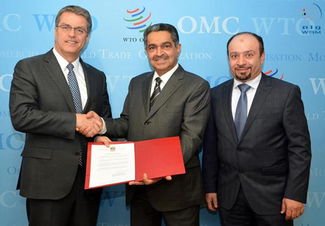 GENEVA, 20th April, 2016 (WAM) -- Obaid Salem Saeed Al Za’abi, UAE Permanent Representative to the United Nations Office in Geneva, yesterday delivered the ratification instrument of the United Arab Emirates on the Trade Facilitation Agreement, TFA, to Roberto Azevedo, Director-General of the World Trade Organisation, WTO. The Director-General of the WTO expressed his thanks and gratitude to the UAE for being the first Arab country to deposit its instrument of acceptance, hoping that other countries will see the UAE as a role model to follow in this regard. The ceremony, which took place at WTO headquarters in Geneva, was also attended by Abdul Salam Al Ali, Director of the UAE Office at the World Trade Organisation. Concluded at the WTO’s 2013 Bali Ministerial Conference, the TFA contains provisions for expediting the movement, release and clearance of goods, including goods in transit. It also sets out measures for effective cooperation between customs departments and other appropriate authorities on trade facilitation and customs compliance issues. It contains provisions for technical assistance and capacity building in this area. The TFA will enter into force once two-thirds of the WTO membership has formally accepted the agreement. – Emirates News Agency, WAM - http://www.wam.ae/en/news/emirates/1395294351570.html