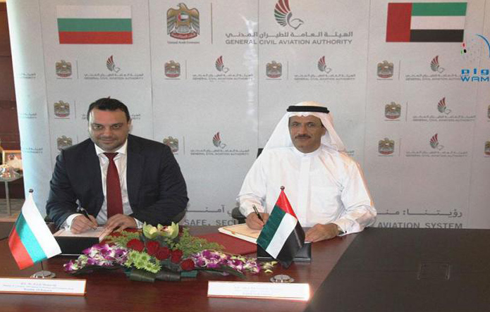 DUBAI, 28th January 2016 (WAM) --- Chairman of the UAE's General Civil Aviation Authority, Sultan bin Saeed Al Mansouri, who is also Minister of Economy, and Bulgarian Minister of Information Technology and Communications, Ivaylo Moskovski, have signed an air services agreement to regulate flights between the two counties. The agreement sets a general legal framework allowing an unlimited number of national carriers of both countries to enjoy complete flexibility on the routes, capacity, frequency of flights and types of owned or chartered aircraft. Director-General of the GCAA, Saif Mohammed Al Suwaidi, said the new agreement serves the interests of both countries and supports the ambitious expansion of Emirati national carriers. In 2009 in Sofia, the UAE and Bulgaria initialled the air services agreement following talks between their civil aviation authorities. Al Suwaidi noted that the agreement will be sanctioned and registered with the International Civil Aviation Organisation after domestic constitutional procedures are completed. He stressed that such agreements contribute to promoting relations with other countries and boosting the UAE's economic sectors of trade and tourism. – Emirates News Agency, WAM - http://www.wam.ae/en/news/emirates/1395290816680.html