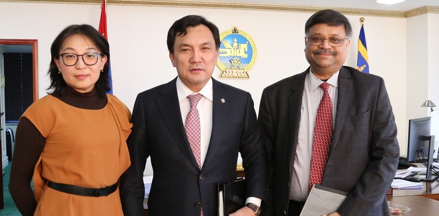 Ulaanbaatar/MONTSAME/ On December 13, Food, Agriculture and Light Industry Minister B.Batzorig met with World Bank’s senior agribusiness specialist M.Sitaramchandra and senior private-sector specialist D.Jigjidmaa.