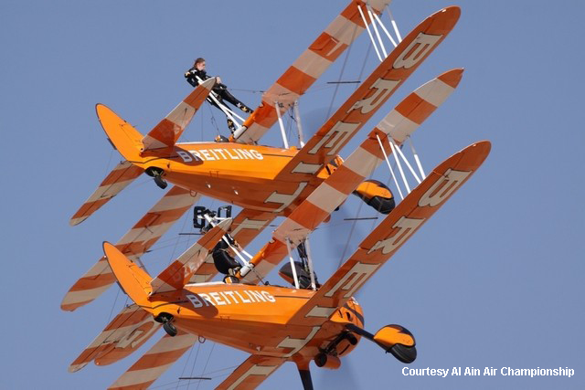 The other civilian teams to grace the skies at the Al Ain Air Championship include one of the UK’s most skilled flying aces, formally from the UK’s Royal Air Force, the UK's Richard Goodwin, the Breitling Wingwalkers (UK), The Belgium Broncos (Belgium), Glider FX Aerobatics (UK) and Artur Keilak (Poland). – Emirates News Agency, WAM - http://www.wam.ae/en/news/sports/1395289257899.html