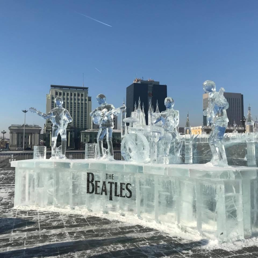 ICE SCULPTURES OF BEATLES AND BUCKINGHAM PALACE ON DISPLAY AT CENTRAL SQUARE