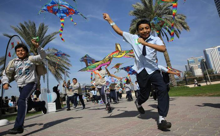 Following the announcement of the festival, hundreds of children, school students and their families flocked to Al Majaz Park to participate in the fun yet informative event by flying their kites high in the Sharjah skies, to send their messages of love and peace to children living under difficult circumstances in different countries throughout the world.