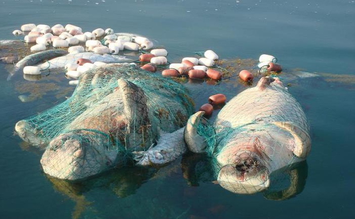 Dugong mortality incidences were frequently reported during the winter months that extend from November to March. The season coincides with higher seagrass biomass, greater congregation of dugongs and an increase in the level of fishing activity. Death incidences are mainly due to drowning in fishing nets, "hiyali", which are used illegally by fishermen during this period of the year to catch king fish. Hiyali drift nets are deployed in shallow waters up to a maximum depth of 8-10m, largely the same waters harbouring extensive seagrass meadows that dugongs naturally inhabit.
