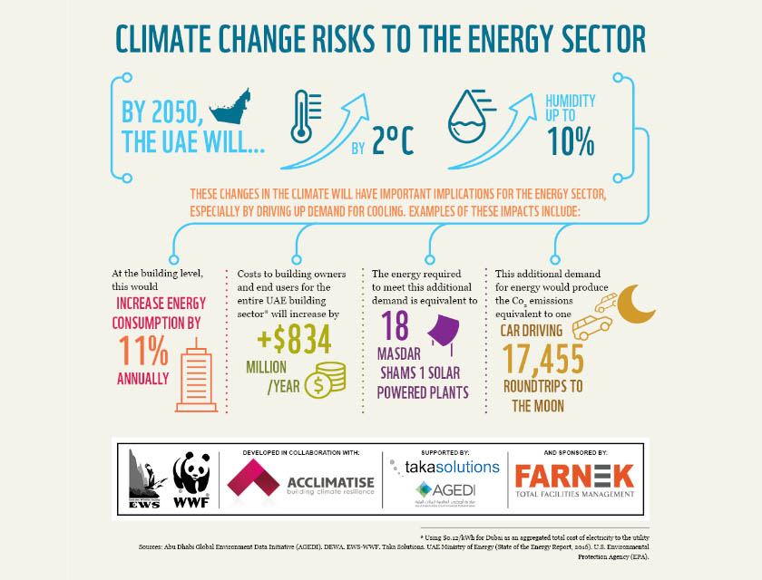 The report titled, "UAE Climate Change Risks and Resilience: An overview of climate change risks to 12 key sectors," demonstrates how climate change can affect various sectors such as food, energy and water. The report aims to improve awareness and understanding of the risks posed by climate change among public and private sector decision-makers and policymakers.