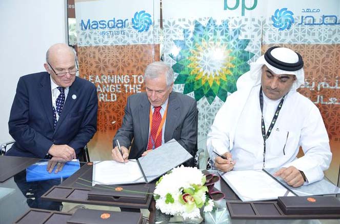 The agreement was signed by AbdulKarim AlMazmi, BP General Manager and Chief Representative in the UAE and Dr. Fred Moavenzadeh, President of Masdar Institute in the presence of Vince Cable, UK Secretary of State for Business and Innovation. The ceremony was held during World Future Energy Summit 2014, a global event hosted annually in Abu Dhabi.