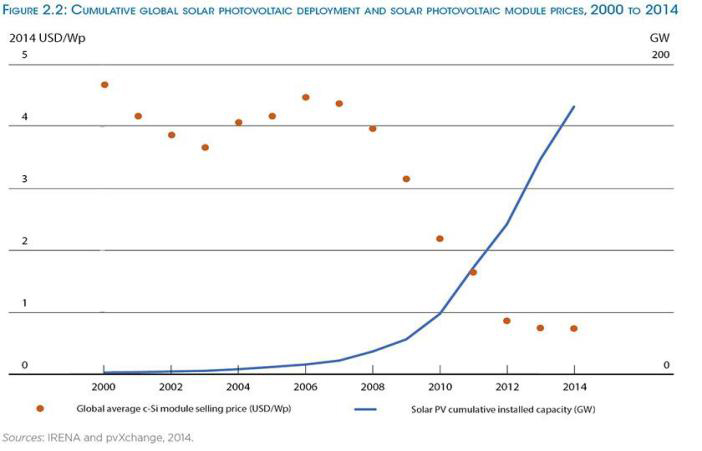 Abu Dhabi, 18th January 2015 (WAM): The cost of generating power from renewable energy sources has reached parity or dropped below the cost of fossil fuels for many technologies in many parts of the world, the International Renewable Energy Agency (IRENA) revealed in a new report. The landmark report, Renewable Power Generation Costs in 2014, concludes that biomass, hydropower, geothermal and onshore wind are all competitive with or cheaper than coal, oil and gas-fired power stations, even without financial support and despite falling oil prices. Solar photovoltaic (PV) is leading the cost decline, with solar PV module costs falling 75 per cent since the end of 2009 and the cost of electricity from utility-scale solar PV falling 50 per cent since 2010. "Renewable energy projects across the globe are now matching or outperforming fossil fuels, particularly when accounting for externalities like local pollution, environmental damage and ill health," said Adnan Z. Amin, Director-General of IRENA. "The game has changed; the plummeting price of renewables is creating a historic opportunity to build a clean, sustainable energy system and avert catastrophic climate change in an affordable way." Report highlights: In many countries, including Europe, onshore wind power is one of the most competitive sources of new electricity capacity available. Individual wind projects are consistently delivering electricity for USD 0.05 per kilowatt-hour (kWh) without financial support, compared to a range of USD 0.045 to 0.14/kWh for fossil-fuel power plants. The average cost of wind energy ranges from USD 0.06/kWh in China and Asia to USD 0.09/kWh in Africa. North America also has competitive wind projects, with an average cost of USD 0.07/kWh. Solar PV module prices have dropped 75% since 2009 and continue to decrease. Residential solar PV systems are now as much as 70% cheaper than in 2008. Between 2010 and 2014 the total installed costs of utility-scale solar PV systems fell by as much as 65 per cent. The most competitive utility-scale solar PV projects are delivering electricity for USD 0.08/kWh without financial support, and lower prices are possible with low financing costs. Their cost range in China, North America and South America has fallen within the range of fossil fuel-fired electricity. Solar power prices are dropping rapidly in the Middle East, with a recent tender in Dubai, UAE, falling to 0.06USD/kWh. Renewables are competitive, even when integrating high shares of variable renewables into the electricity. When damage to human health from fossil fuels in power generation is considered in economic terms, along with the cost of CO2 emissions, the price of fossil fuel-fired power generation rises to between USS 0.07 and 0.19/kWh. For 1.3 billion people worldwide without electricity, renewables are the cheapest source of energy. Renewables also offer massive gains in cost and security for islands and other isolated areas reliant on diesel. Thanks in large part to the clear business case for renewables, a record high of 120 gigawatts of renewable energy was added to the global energy mix in 2013, with similar additions forecast for 2014. Renewable energy accounted for 22 per cent of global electricity generation and 19 per cent of total final energy consumption in 2013. "Now is the time for a step-change in deployment for renewables," said Mr. Amin. "It has never been cheaper to avoid dangerous climate change, create jobs, reduce fuel import bills and future-proof our energy system with renewables. This requires public acknowledgement of the low price of renewables, an end to subsidies for fossil fuels, and regulations and infrastructure to support the global energy transition." The report goes on to explain that renewable energy price improvements are not universal, and that costs range widely according to resources and the availability of financing. Offshore wind and concentrated solar power (CSP) technologies are in earlier stages and deployment costs remain higher than those of fossil fuels. These technologies will however become more cost-competitive in future, especially where low-cost financing is available. – Emirates News Agency, WAM – http://www.wam.ae/en/news/economics/1395275218820.html