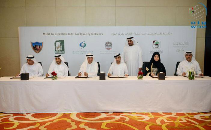 DUBAI, 26th May, 2015 (WAM) -- Following the directives of Vice President and Prime Minister and Ruler of Dubai, His Highness Sheikh Mohammed bin Rashid Al Maktoum, the Ministry of Environment and Water has signed a Memorandum of Understanding, MoU, with the National Centre for Meteorology and Seismology, NCMS, the Environment Agency-Abu Dhabi, EAD, Dubai Municipality, Fujairah Municipality, the Municipality and Planning Department in Ajman and Sharjah Municipality, for the launch of the UAE Air Quality Network.
