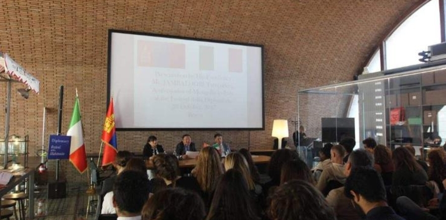 Ulaanbaatar /MONTSAME/ The Embassy of Mongolia in Italy organized an event ‘Mongolian Hours’ in a conference hall of the Mercato Centrale di Roma, on October 23. At the event, organized within the ‘Festival della Diplomazia’ ran on the second year, Mongolian Ambassador Ts. Jambaldorj publicized about Mongolia’s history, culture and tourism sector, the Mongolia-Italy relations and then replied to broad-range questions by participants on Mongolia’s nomadic lifestyle and tradition, investment environment, relations and cooperation with two neighbors as well as others. The Festival della Diplomazia is traditionally organized in public places in order to involve as many as people. During the event ‘Mongolian Hours’, the embassy staff distributed information about Mongolia, magazines and brochures as well as offered Mongolian dishes. M. Unurzul