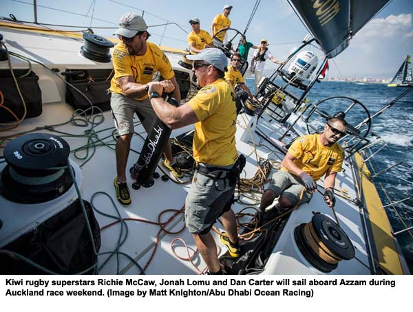 ABU DHABI, 11th March, 2015 (WAM) -- Abu Dhabi Ocean Racing (ADOR) will be boosted by three of New Zealand’s most cherished sporting heroes when competitive action in the Volvo Ocean Race (VOR) resumes at the end of the stopover in Auckland this weekend. New Zealand rugby legend Jonah Lomu, scorer of the most tries in Rugby World Cup history, will step aboard ADOR’s racing yacht Azzam as celebrity guest for the New Zealand Herald In-Port Race on Saturday March 14th. The following day, when ADOR sets out on Leg 5 to Brazil, rugby superstars Richie McCaw and Dan Carter will be on-board for the inshore section before jumping from Azzam’s stern as she heads into open ocean. British double Olympic silver medallist Ian Walker, skipper of the Abu Dhabi Tourism and Culture Authority (TCA Abu Dhabi)-backed team, said having the world-class trio sail on Azzam was an exciting prospect and would give the crew the perfect boost as they take on what promises to be the toughest leg so far. "There are few more well-recognised names in sport than Lomu, McCaw and Carter, they are household names here in New Zealand and also highly regarded by sporting fans around the world," Walker said. "We can’t wait to meet them and give them a taste of what ocean racing is like." Lomu exploded on to the international rugby scene in the famous black jersey at the 1995 World Cup in South Africa when his power and pace made him the scourge of the world’s best defences and earned him a permanent place in the hearts of all Kiwi rugby fans. He represented his country 63 times, scoring 37 tries. "When I received an invitation to join the guys competing in this ultimate round-the-world sailing race, I jumped at the chance," said Lomu. "I know the team from Abu Dhabi is currently leading both the overall race and the In-Port Race series, so hopefully I will have the best vantage point possible to see another podium finish on Saturday!" ADOR’s pair of celebrity jumpers for the Leg 5 departure from Auckland are lauded by rugby experts as two of the finest players in the history of the game. Captain and openside flanker McCaw is the most capped New Zealand player of all-time, and has won more Tests than any other player in the history of the game, while Carter is the world record-holder for most points in Test Match rugby. McCaw has been voted World Player of the Year on three occasions (2006, 2009, 2010), while Carter has won the award twice (2005, 2012). Carter, who many observers regard as the greatest fly-half ever, said, "I’m so stoked to sail with Abu Dhabi Ocean Racing. Being on-board whilst the crew are in race mode, will be such a cool experience." – Emirates News Agency, WAM – http://www.wam.ae/en/news/sports/1395277742961.html