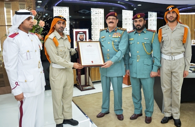 Colonel Saif Saeed Al Shamesi, Chief of the Cultural and Social Activity Section at the Abu Dhabi Police Clubs and Sports Activities Department, presented Major General Badran with the certificates and commemorative gifts earned from the International Berlin Military Music Festival, Berlin Tattoo 2014. The Abu Dhabi Police won the gifts in recognition for their distinguished participation during the festival.