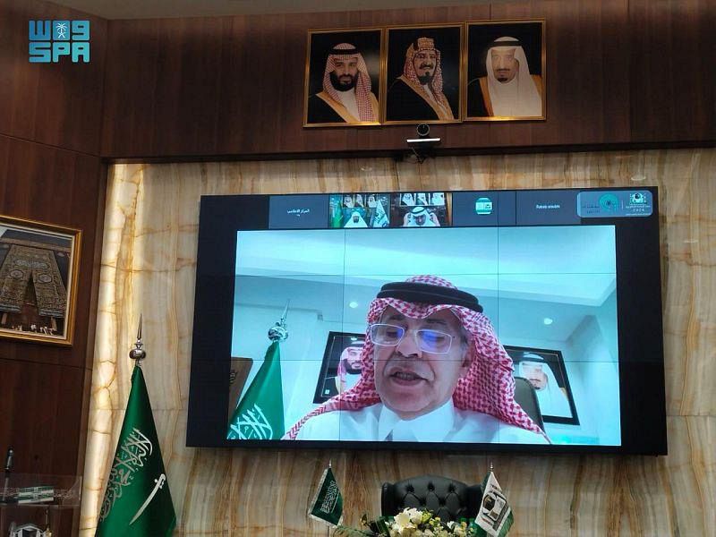 Makkah, June 30, 2021, SPA -- Acting Minister of Media Dr. Majid Bin Abdullah Al-Qasabi and the President for the General Presidency Affairs of the Two Holy Mosques Sheikh Dr. Abdurrahman Bin Abdulaziz Al-Sudais, launched, via videoconference, on Wednesday the operational plan for Hajj season 1442 H (2021). Dr. Al-Qasabi, in his speech on the occasion, expressed happiness to participate in the launch of the media plan for the Presidency for this year's Hajj season, while stressing that it is the Kingdom, leadership and the people’s privilege and honor to serve the Two Holy Mosques and the pilgrims — both for Hajj and Umrah — and visitors. "The Kingdom's government, under the leadership of the Custodian of the Two Holy Mosques King Salman Bin Abdulaziz Al Saud and HRH the Crown Prince, has enabled all concerned sectors to facilitate service to pilgrims, and use all capabilities to help pilgrims complete their Hajj obligation and rituals with security, safety, ease and health," he said. Dr. Al-Qasabi reiterated that for the second year in a row the organization of the Hajj season is taking place amid exceptional circumstances in light of what the whole world is witnessing with ongoing developments of the novel coronavirus (Covid-19) pandemic and the emergence of new mutations of the virus. With the COVID-19 pandemic still affecting the world, the Kingdom decided to limit this year’s Hajj season to 60,000 pilgrims. The pilgrims, both citizens and residents, have been selected from within the Kingdom. This move was taken in order to preserve the health and safety of pilgrims, and ensure that the Hajj rituals are held in a safe and healthy environment with the application of precautionary measures. The acting Minister of Media also expressed thanks to the Presidency’s President and its employees for their continuous efforts to serve the Two Holy Mosques. For his part, President Sheikh Al-Sudais extended his thanks to the wise leadership for the generous and great care it accords to the Two Holy Mosques and the pilgrims, Umrah pilgrims and visitors, stressing that the state’s care was manifested in the wise and successful decisions and precautionary measures taken by the Kingdom in the Two Holy Mosques since the outbreak of the pandemic. These measures enabled the exceptional Hajj season to be crowned with great success that the whole world witnessed. The Hajj season was streamlined with codified procedures and extensive arrangements in which many state agencies joined hands to achieve a successful and incident-free Hajj season. Sheikh Al-Sudais also highlighted the Presidency's keenness to intensify precautions and activate the technical aspects, while facilitating rituals, enriching the experience and achieving leadership in good hospitality in line with the values of the Kingdom of Saudi Arabia and its Vision 2030. He indicated that the Presidency's plan for this year's Hajj season 2021 depends on several pillars, namely, hospitality that aims to highlight the values of generosity and cordiality in providing services to pilgrims of the Grand Mosque, which are derived from the true religion and the teachings of the Prophet, may Allah’s prayers and peace be upon him, and what has been known about the people of the Kingdom since its inception at the hands of the founder, late King Abdulaziz up to this prosperous era. Sheikh Al-Sudais indicated that the presidency aims to distribute bottles of Zamzam water to pilgrims during this year's Hajj season, and it has used the latest artificial intelligence techniques to provide bottles of the blessed Zamzam water through smart robots and high-tech vehicles, to provide chilled and sterilized water, according to the precautionary controls and procedures. He also said that the Presidency will be providing more than 800 “manual and electric, single or double” vehicles to facilitate movement within the Grand Mosque and its courtyards, and to ease the performance of rituals for the elderly and the people with special needs among the pilgrims. He also stated that the presidency has recruited up to 5,000 workers to sterilize the entire Grand Mosque, its courtyards and facilities ten times a day, plus the backup washes, using more than 60,000 liters of disinfectant materials. The Presidency has worked to use the latest technologies in the field of sterilization and disinfection to ensure that the environment of the Grand Mosque is free of any viruses or epidemics, as smart robots and a number of modern mechanisms have been included in the sterilization operations and are operated by a group of qualified national competencies. He indicated that the campaign titled “Serving the Pilgrim and the Visitor is a badge of pride for us” continues for the ninth year in a row, with the Presidency aiming, through it, to provide valuable gifts such as umbrellas, sterilizers, and the like, making it easier for the pilgrim to perform their rituals. With regard to grouping and gatherings, Sheikh Al-Sudais explained that the Presidency has prepared a tight plan in cooperation with the Ministry of Hajj and Umrah and the concerned authorities to facilitate the entry of pilgrims to the Grand Mosque to perform the three-time circumambulations of Arrival Tawaf, Tawaf Al-Ifadah and Farewell Tawaf through multiple entrances and exits, while raising the capacity of the virtual paths on the courtyard to 25. Regarding the precautionary measures, he stated that the Presidency was keen on continuous sterilization of all facilities used by pilgrims before and after performing rituals, including sterilization of all direct service workers and the provision of disinfectants at all entrances, corridors and squares. Sheikh Al-Sudais stressed that the Presidency has not neglected people with special needs. In the interest of this dear group, the Presidency has prepared a number of small rooms for prayer to be adapted for the elderly and people with special needs, in additio