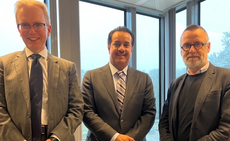 Manama, Jan. 16 (BNA): Bahraini Ambassador to Belgium Abdulla bin Faisal bin Jabur Al Doseri met the Managing Director for the Middle East and North Africa (MENA) Fernando Gentilini, and Deputy of the MENA Managing Director in the European External Action Service Carl Hallegard. The meeting discussed a number of regional and international issues of mutual concern. The ambassador praised the partnership and cooperation between Bahrain and the European Union (EU), stressing the importance of strengthening the ongoing cooperation, continuation of joint projects, and the exchange of experiences and knowledge in various fields, such as the Foreign Policy Instrument and a number of projects and courses in order to realize the common objectives between the EU and Bahrain.