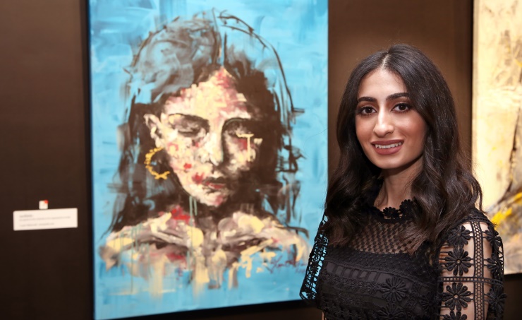 Donning a black mesh and lace dress and oozing confidence, Layal stood next to her paintings, beaming with pride as she was constantly complimented on her artwork.