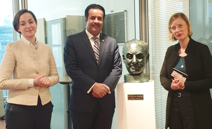 Manama, Mar. 18 (BNA): The Assistant Foreign Minister, Abdulla bin Faisal bin Jabur Al Doser, met with the Executive Director for International Affairs at the Korber Foundation, Nora Muller, in Berlin, Germany, on the sidelines of his visit to the Federal Republic of Germany to enhance relations and bilateral cooperation, namely in the field of human rights.