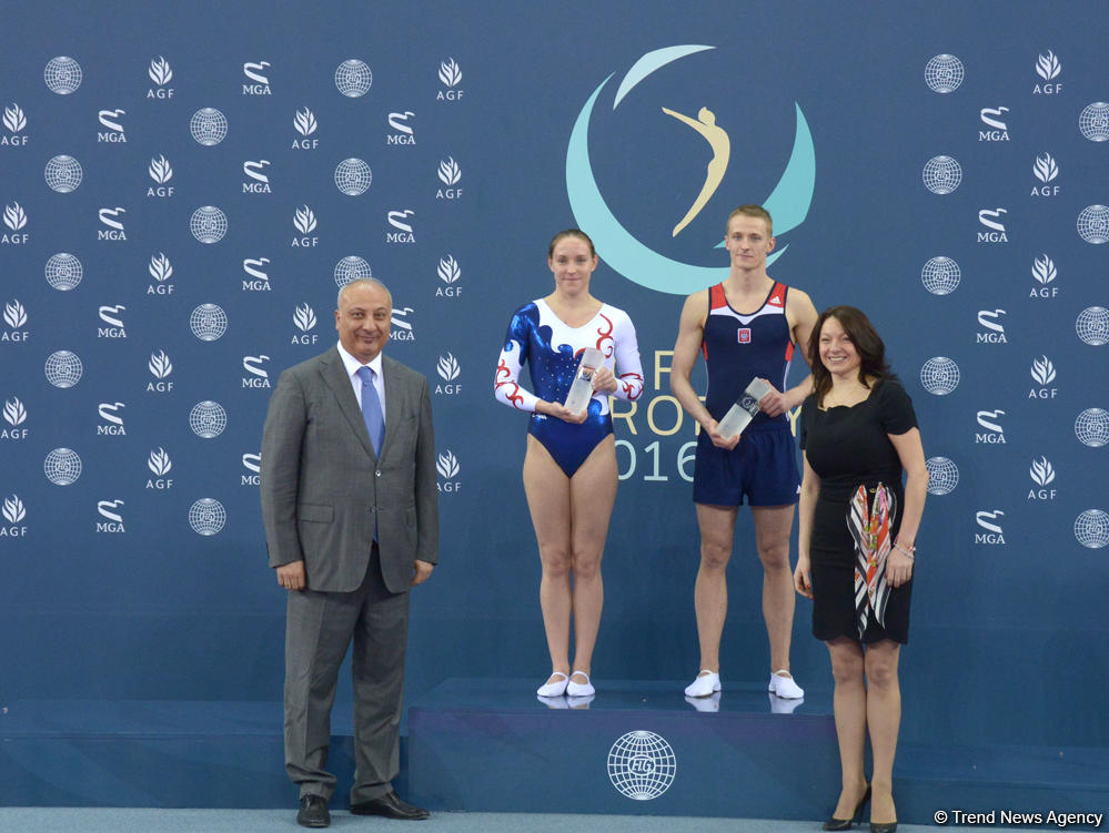 Baku, Azerbaijan, March 6 Trend: Award ceremony was held at the National Gymnastics Arena in Baku for winners and awardees of the finals among men and women in individual and synchronized events at the FIG World Cup in Trampoline Gymnastics March 6. The ceremony was attended by the Vice-President of Azerbaijan Gymnastics Federation Altay Hasanov, Technical Delegate from the International Federation of Gymnastics (FIG) Dmitry Poliarush, Azerbaijan’s Education Minister Mikayil Jabbarov, President of the FIG Trampoline Gymnastics Technical Committee Horst Kunze and Secretary General of Azerbaijan Gymnastics Federation Farid Gayibov. Moreover, there was held the ceremony of presenting the special prize of Azerbaijan Gymnastics Federation, AGF Trophy, for the best performance and the highest score. Polish gymnast Artur Zakrzewski among men and Russian Victoria Voronina among women received the award. The awards were handed by Vice Altay Hasanov and head coach of Azerbaijani national rhythmic gymnastics team Mariana Vasileva. The FIG World Cup in Trampoline Gymnastics was held March 5-6 at the National Gymnastics Arena in Baku. Athletes from Europe, Japan, Australia and the US participated in the World Cup. Overall, 77 gymnasts (46 men and 31 women), who represent 17 countries, participated in the competitions. Follow us on Twitter @TRENDNewsAgency