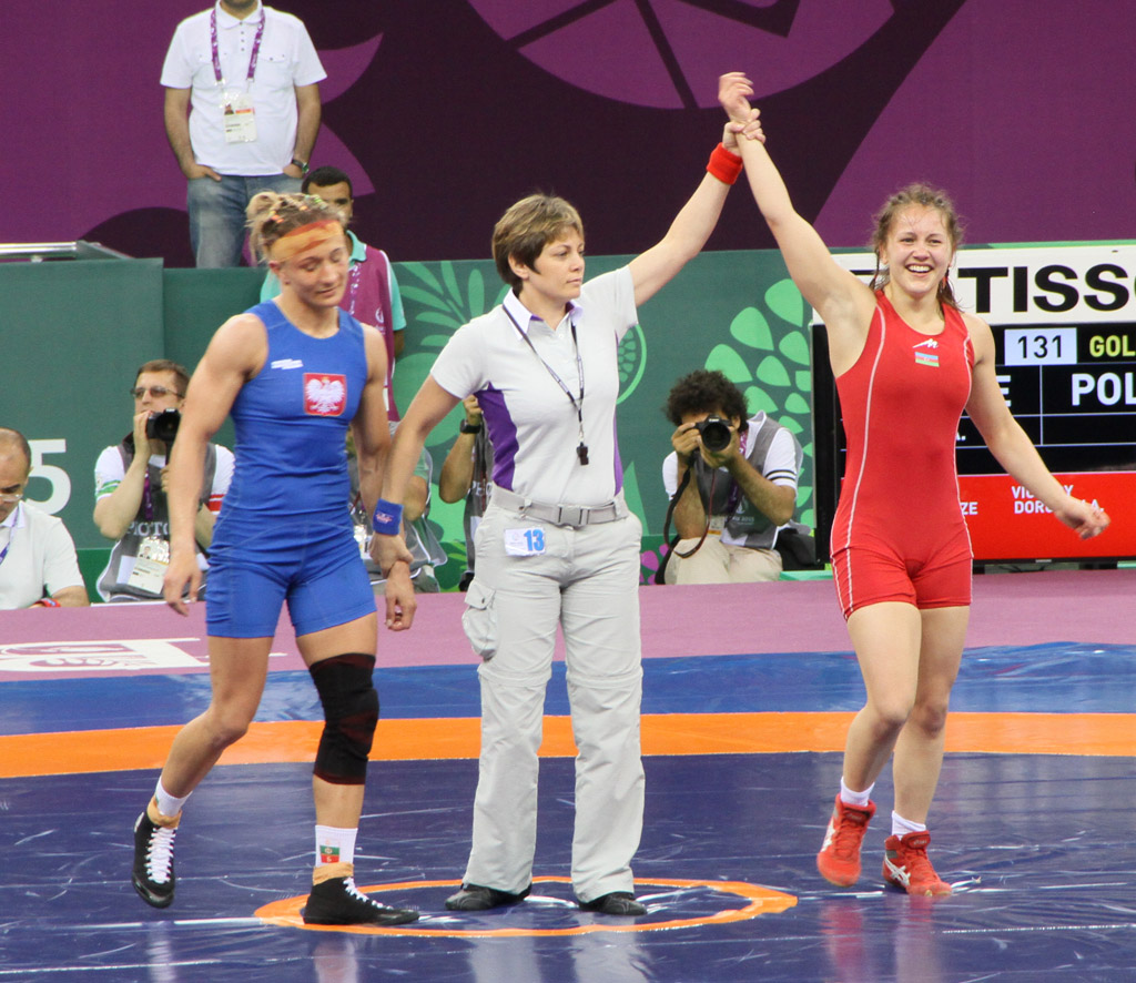 Trend:Azerbaijan’s female athlete, Anzhela Dorogan has gained a victory over Roksana Zasina (Poland) in the final of women’s freestyle wrestling (53 kg) at the First European Games in Baku.