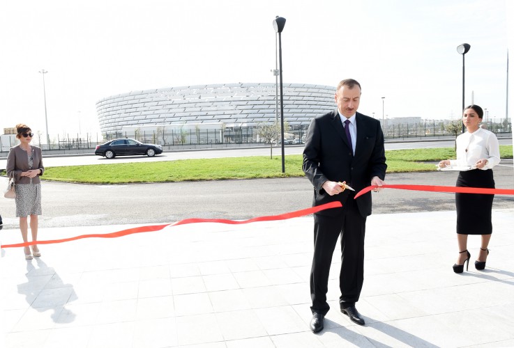 Then President Aliyev cut the ribbon symbolizing the official inauguration of Boyukshor boulevard and park.