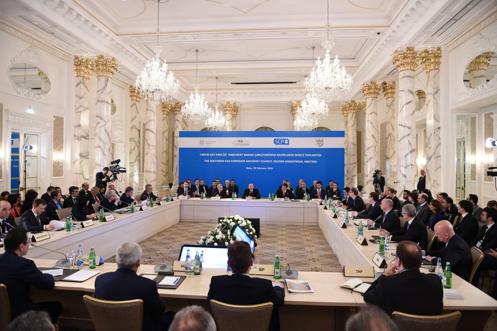 Baku, Azerbaijan, Feb. 29 Trend: The second Southern Gas Corridor Advisory Council Meeting has started in Baku on Feb. 29. Azerbaijani President Ilham Aliyev is participating in the meeting. The energy ministers and representatives of various organizations from the Southern Gas Corridor member-states are participating in the meeting as well. Maros Sefcovic, Vice-President for Energy Union, Berat Albayrak, Turkish Minister of Energy and Natural Resources, Amos Hochstein, US Special Envoy for Energy Affairs of the US Department of State, Edmund Hosker, Director General for International Energy Issues of the UK Energy and Climate Change Department, Claudio De Vincenti, State Secretary of the Council of Ministers of the Italian Republic and others are also participating in the event. Three plenary sessions and a round table will be held as part of the meeting. Sefcovic and Natig Aliyev, Azerbaijani energy minister will make statements for the press. Follow us on Twitter @TRENDNewsAgency
