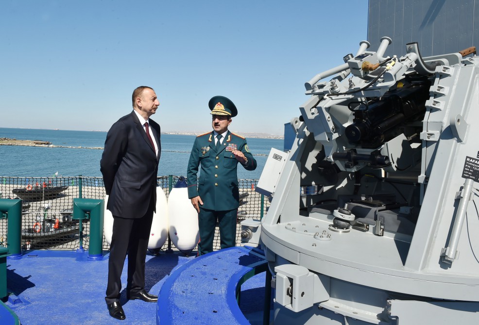 President Aliyev was informed that the new ship sports the perfect navigation and radio communication equipment, state-of-the-art weapons, including missiles and rockets against weapons complex, day and night vision surveillance systems and a hydro acoustic device.