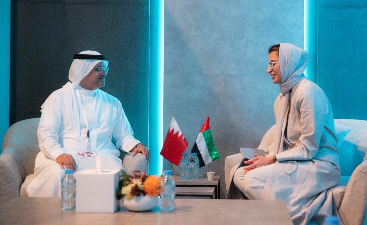 Abu Dhabi, Oct. 25 (BNA): President of Bahrain Authority for Culture and Antiquities (BACA), Shaikh Khalifa bin Ahmed bin Abdullah Al Khalifa, met with the UAE Minister of Culture and Youth, Noura Al Ka’abi, on the sidelines of the fifth cultural summit which was held in Abu Dhabi from October 23 to 25. Both sides discussed cultural issues on the regional scene, particularly after the cultural summit which shed light on creative cultural solutions regarding international issues and contemporary challenges. They also discussed means of enhancing cultural cooperation between the two brotherly countries.