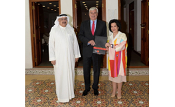Manama, May 22 (BNA): Bahrain Authority for Culture and Antiquities (BACA) President Shaikha Mai bint Mohammed Al-Khalifa today received National Bank of Bahrain (NBB) Chief Executive Officer Jean-Christophe Durand and secretary-general Nasser Mohammed Nasser, who presented a cash donation in support of the Shaikh Ibrahim Centre for Culture and Research.