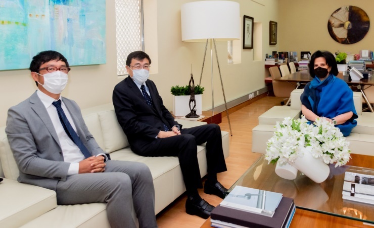 Manama, Feb. 24 (BNA): President of Bahrain Authority for Culture and Antiquities (BACA), Shaikha Mai bint Mohammed Al Khalifa, received in her office today Japanese Ambassador to the Kingdom of Bahrain, Miyamoto Masayuki, who was accompanied by Dr. Akinori Uesugi, a specialist in ancient civilisations and excavation at Kanazawa University, Japan.