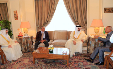 Cairo, Sep. 14 (BNA): The Good Word Society (GWS)’s Honorary President HH Shaikh Isa bin Ali bin Khalifa Al Khalifa, here today, met Arab League Secretary General Ahmed Aboul Gheit, in the presence of former Secretary General Amr Moussa and Bahrain’s Ambassador to Egypt Shaikh Rashid bin Abdulrahman Al Khalifa.