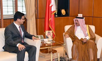 Manama, Nov. 29 (BNA): Royal Court Minister Shaikh Khalid bin Ahmed Al Khalifa today received Ambassador of the Chinese People's Republic to the Kingdom of Bahrain, Qi Zhenhong.