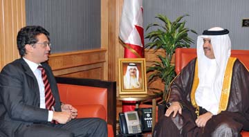 Manama, Nov. 29 (BNA): Assistant Foreign Minister Abdullah bin Faisal Al-Doseri today received Head of the European Union (EU) delegation to Kingdom of Bahrain, Ambassador Michele Cervone d’Urso currently visiting the Kingdom. The assistant minister praised the relations of cooperation and coordination between the Kingdom of Bahrain and the European Union, affirming keenness to strengthen these relations to achieve the common goals and interests of both sides. The assistant minister reviewed with the Head of the European Union Delegation the efforts exerted by the Kingdom of Bahrain to address terrorism, reiterating the Kingdom's commitment to support all regional and international efforts to confront this phenomenon that threatens the safety and stability of the region. He noted the Kingdom’s cooperation with its partners, including the European Union, to achieve world peace. The meeting highlighted the progress made by the Kingdom of Bahrain in sustainable development, promotion and protection of human rights and public freedoms. The assistant minister said that the Kingdom of Bahrain has taken advanced steps in promoting human rights, based on the reform approach of His Majesty King Hamad bin Isa Al Khalifa, to create a democratic society characterized by peace, development and justice.  For his part, the head of the EU delegation praised the distinguished cooperation relations between the Kingdom of Bahrain and the European Union, stressing the importance of enhancing joint coordination between the two sides, especially in combating international terrorism. He valued the reform and development efforts in the Kingdom which has been widely praised in several international forums. The meeting also discussed regional and international developments.