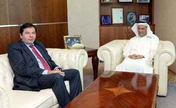Manama, Mar. 30 (BNA): The Advisor of HRH the Prime Minister for Economic Affairs, Abdullah bin Hassan Saif, has received the Ambassador of France to Bahrain, Bernard Regnauld-Fabre. The meeting reviewed the bilateral ties and means of boosting them at various levels in the interest of both friendly countries and peoples. The Premier's advisor commended the level of cooperation in all fields, especially economic, commercial and investment fields, that reflect the mutual keenness on consolidating the cooperation areas in various sectors. He affirmed the Kingdom of Bahrain's care to develop the cooperation with France, lauding the ambassador's efforts in this regard. The French ambassador expressed his gratitude and appreciation of Bahrain government attention to bolstering the bilateral cooperation, reiterating his country's keenness on expanding the cooperation areas with the Kingdom and developing it to wider horizons to satisfy the aspirations of both countries and peoples.