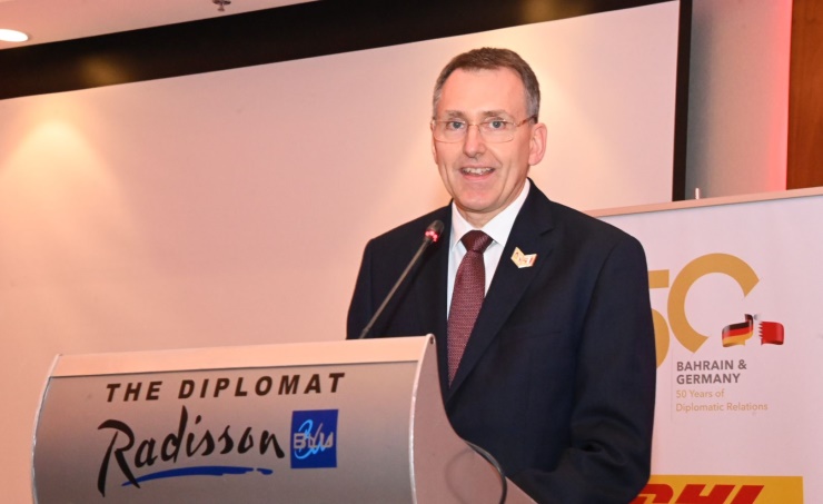 Manama, May 18 (BNA): The German Ambassador to Bahrain Kai Boeckmann has lauded the steady progress of the partnership between Bahrain and Germany since the launch of their diplomatic relations in 1972. "As we celebrate the 50th anniversary of this important date, I would like to express my gratitude to the Kingdom of Bahrain, especially to HM King Hamad bin Isa Al Khalifa, to HRH Prince Salman bin Hamad Al Khalifa, the Crown Prince and Prime Minister, and the government and the people of Bahrain for their strong commitment and support to the relations between our two countries," Boeckmann said. "Germany and Bahrain are close and reliable partners, in their bilateral relations and in many international fora. Both share a commitment to the rules-based international order, seeking peace and understanding between nations. Both are active and committed members of regional organisations, the European Union and the Gulf Cooperation Council," he said at a reception to mark the golden jubilee of the relations. Relations between Bahrain and Germany are strong not only in the diplomatic field, but also in the economic and cultural field, he added. "German companies have invested in Bahrain, employ hundreds of Bahraini citizens and participate in important infrastructure projects. Both countries are committed to Climate Action – Germany has initiated an energy transition from fossil to renewable fuels and therefore strongly welcomes the pledge by His Royal Highness Prince Salman bin Hamad Al Khalifa, the Crown Prince Prime Minister, to reach net-zero emissions by 2060 and a 30% reduction by 2035." This offers chances for further cooperation bringing together German and Bahraini expertise. Notwithstanding COVID-19, trade between Bahrain and Germany has been constantly on the rise over the last years – in both directions, he said. In the cultural field, hundreds of Bahraini students have participated in the language courses organized by the German Embassy in cooperation with the Goethe Institute for more than a decade. Musicians from Germany have participated in many of Bahrain’s festivals organized by the Bahrain Authority for Culture and Antiquities over the past years. The Gulf German Film Festival 2021 brought new German movies to movie enthusiasts in Bahrain. "As I look to the future of our relations, I am confident that German-Bahraini friendship will persist and grow over the next 50 years," Boeckmann said.