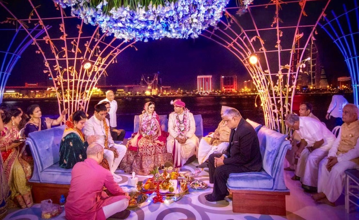 Manama, (BNA): Bahrain hosted an exotic Indian wedding of the son of Indian businessman, Sushil Mantri, of Bangalore, from December 15 to December 17 2018, at the Four Seasons Hotel Bahrain Bay. The event attracted more than 800 guests who travelled on Bahrain's national carrier, Gulf Air, from various Indian cities, including Bangalore, Mumbai, Delhi and Chennai, and from other parts of the world. The ceremony followed the continuous efforts by the Bahrain Tourism and Exhibition Authority (BTEA) to promote the Kingdom as a key destination for weddings and other happy occasions, The three-day wedding included a series of activities, the first of which was the arrival of the Bride and Groom in a traditional Bahraini environment and means of transportation; the Groom arrived on a purebred Arabian horse accompanied by traditional Indian music and dancers, while the Bride arrived to the scene of the wedding onboard a traditional boat at Bahrain Bay. After the ceremony, Bahrain’s skyline was adorned with a display of fireworks to celebrate the wedding and the Kingdom’s National holiday, commemorating the joy of both glorious occasions. On the second day of the celebrations, the guests were invited to a traditional Souk (bazaar) that was hosted at the Hotel's large halls, allowing guests to witness traditional Bahraini craftsmen at work, manufacturing beautifully crafted products made of gold and pearls, traditional women’s and men’s clothing; and enjoy traditional sweets and beverages that were presented. To conclude the third and final day, a special social and sports program was organized at Bahrain International Circuit to enjoy karting as a final farewell. "BTEA has played a pivotal role in planning and organizing this wedding, ensuring that the entire event ran smoothly from end to end. By coordinating with the authorities concerned, particularly, the Ministry of Interior, the Ministry of Information, and other organisations such as Bahrain Airport Company; we worked together diligently as a single team to organize the event’s logistics and ensure the selection of appropriate locations. Further communications were also made with various suppliers and specialists, including Gulf Air among others. It is of note that all the decoration and designs were produced in the Kingdom of Bahrain and implemented by Bahraini wedding and event planners.", said BTEA Adviser Dr. Ali Hasan Follad. "We are pleased to announce that we plan to host more prominent weddings this month, and over the course of the next four months, which will enhance Bahrain’s position as an ideal destination for weddings and other celebrations. The Kingdom of Bahrain boasts a sophisticated tourist sector, comprising 4-star and 5-star hotels catering to all tastes, offering a variety of upscale amenities in food, beverages and entertainment; and a vibrant tourism sector specialized in organizing wedding ceremonies and presenting unique wedding concepts.", he added. This event is a result of BTEA’s continuous participation in exhibitions and conferences throughout the year, including its promotional campaigns in India to promote the Kingdom as an ideal wedding and event destination; in line with BTEA’s strategy to promote a wide and unique range of services powered by advanced tourism facilities, including international luxury hotels, wedding and event organizers, tourism and travel operators, event halls, and many more.