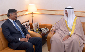Manama, June 13 (BNA): Shaikh Khalifa bin Duaij Al Khalifa, President of the Court of the Crown Prince, today received the Indian Ambassador to Bahrain, Alok Kumar Sinha. The meeting reviewed bilateral relations and the progress of cooperation in various areas within the keen interest of both countries to expand its scope and boost its levels. The Indian diplomat stressed the significance of cooperation on developing relations between the two friendly countries