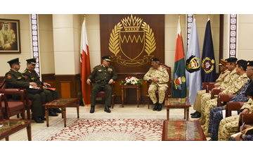 Present at the meeting were General Command Court Director Major General Hassan Mohammed Sa'ad, Inspector General Major General Abdullah Hassan Al Nuaimi, Assistant Chief of Staff for Supply and Catering Rear Admiral Yusef Ahmed Malallah, Assistant Chief of Staff for Human Resources Major General Shaikh Ali bin Rashid Al Khalifa and Military Cooperation Director Rear Admiral Mohammed Hashim Al Sadah.