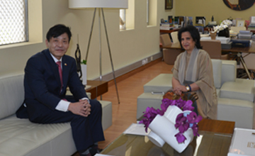 Manama, Aug.9 (BNA): Bahrain Authority for Culture and Antiquities (BACA) President Shaikha Mai bint Mohammed Al-Khalifa received Korean Ambassador Koo Hyun-Mo and discussed cooperation to enrich cultural exchanges. She underlined BACA-led efforts to promote cultural life in Bahrain and strengthen relations in the world, hailing the participation of the Korean Philharmonic Orchestra in the 13th Spring of Culture. BACA president briefed the Korean envoy about latest projects lined up as part of festivities marking the Muharraq Capital of Islamic Culture 2018. She announced that a visitors’ centre would be inaugurated late November 2018, at the location of the Pearl Trail, which featured on the UNESCO List of World Heritage Sites. The Korean envoy expressed delight at construction cooperation with the authority, stressing the necessity of strengthening cultural ties. He underlined his country’s keenness on taking part in upcoming cultural seasons in Bahrain.
