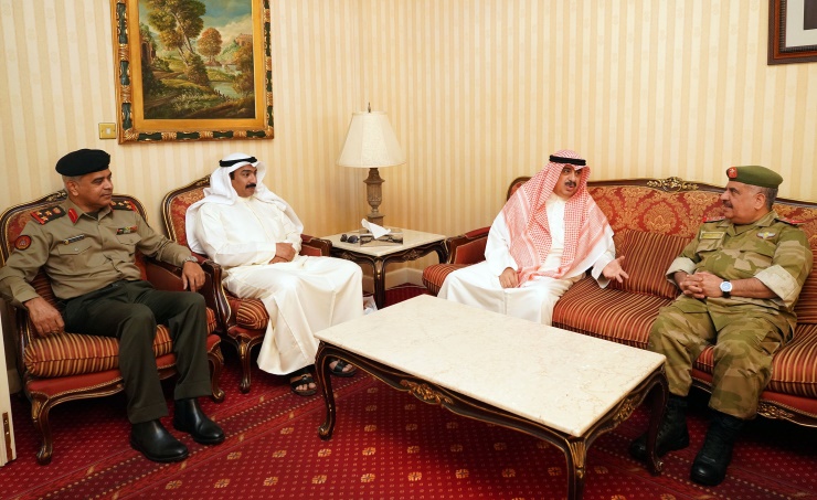 Manama, Mar. 20 (BNA): The National Guard's Director of Staff Major-General Shaikh Abdulaziz bin Saud Al Khalifa received Lt-General Hashem AbdulRazzaq Al Refai, Undersecretary of Kuwait National Guard, at Bahrain International Airport in presence of Kuwait’s Military Attaché to Bahrain, Brigadier Nasser Abdulaziz Al Samhan, and senior officers. Major-General Shaikh Abdulaziz conveyed the greetings of His Highness General Shaikh Mohammed bin Isa Al Khalifa, President of the National Guard, praising the advanced cooperation between the National Guard with its Kuwaiti counterpart, including the active cooperation protocols to achieve the security and stability of both brotherly countries. Lt-General Al Refai conveyed the greetings of HH Shaikh Salem Al-Ali Al Sabah, President of Kuwait National Guard and the greetings of Shaikh Mishaal Al Ahmed Al Jaber Al Sabah, Deputy President of Kuwait National Guard, to HH General Shaikh Mohammed bin Isa Al Khalifa, President of the National Guard, praising the deep-rooted fraternal ties including the exchange of expertise and cooperation in various fields, especially citing the military cooperation.