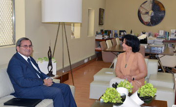 Manama, Sep. 26 (BNA): President of Bahrain Authority for Culture and Antiquities (BACA) Shaikh Mai bint Ibrahim Al Khalifa today discussed with Russian Ambassador to Bahrain, Vagif Garayev, 2017 joint cultural projects. The BACA President commended the ambassador’s efforts to boost bilateral cultural relations. The meeting tackled the BACA’s Dilmon Exhibition to be held at the Hermitage Museum of Saint Petersburg, as well as the Russian ballet show Romeo and Juliet scheduled to be hosted by Bahrain on Nov. 12, coinciding with the fifth anniversary of Bahrain National Theater. The Russian Ambassador handed an invitation over to the BACA President to the 2017 St. Petersburg International Cultural Forum. He lauded Bahrain’s keenness on enhancing cultural exchange with the world.