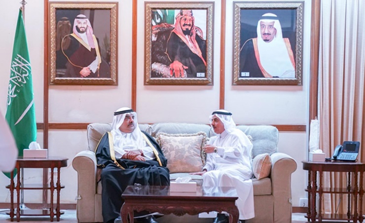 Manama, Nov.6(BNA): His Royal Highness Premier’s Advisor His Highness Shaikh Salman bin Khalifa Al-Khalifa met this evening Saudi Ambassador to Bahrain Dr. Abdulla bin Abdulmalak Al-Sheikh at the Saudi Embassy headquarters. HH Shaikh Salman bin Khalifa Al-Khalifa hailed deep-rooted historic and fraternal relations binding the Kingdom of Bahrain and the Kingdom of Saudi Arabia . He reiterated Bahrain’s unwavering support to Saudi Arabia in all circumstances, commending the Saudi pivotal standing among the Arab and Islamic nations. The Saudi ambassador welcomed the visit of HH Shaikh Salman bin Khalifa Al-Khalifa, hailing deep-rooted relations binding the two brotherly countries and peoples.