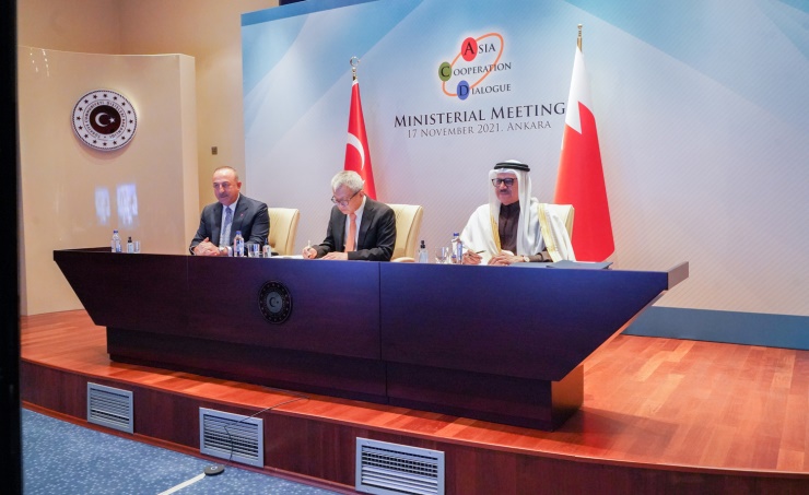 Ankara, Nov. 17 (BNA): The Kingdom of Bahrain took over the presidency of the next session of the Asian Cooperation Dialogue (ACD) for the period from 2021-2022, in the presence of the Minister of Foreign Affairs, HE. Dr. Abdullatif bin Rashid Al-Zayani and the Minister of Foreign Affairs of the Republic of Turkey and chairman of the current session of the Dialogue, HE. Mevlut Cavusoglu. A number of Ministers of Foreign Affairs of member states participated virtually in the presence of the Secretary-General of ACD, Pornchai Danvivathana. The Minister of Foreign Affairs delivered a speech in which he thanked his Turkish counterpart and ACD Secretary-General for their distinguished efforts to ensure the smooth and effective work of the secretariat. He affirmed the Kingdom of Bahrain's commitment to the goals, roles and principles of the ACD as one of its founding members. He added that the Kingdom of Bahrain's own experience in ensuring and promoting sustainable development demonstrated the importance of effective cooperation with all friends and partners throughout Asia. He also affirmed the importance of setting clear strategic plans and development programmes, as directed by His Majesty King Hamad bin Isa Al Khalifa, with the support of His Royal Highness Prince Salman bin Hamad Al Khalifa, Crown Prince and Prime Minister. The Minister of Foreign Affairs stressed that the Kingdom of Bahrain seeks to deepen coordination and cooperation with partners in the ACD to achieve common goals. The meeting was attended by the Ambassador of the Kingdom of Bahrain to the Republic of Turkey, HE. Ibrahim Yousef Al Abdullah, the Chief of Afro-Asian Affairs, HE. Ambassador Fatima Abdullah Al-Dhaen, and the delegation accompanying the Minister of Foreign Affairs.