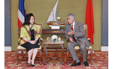 Bangkok, July 5 (BNA): On the sidelines of his official visit to the Kingdom of Thailand, the Minister of Industry, Commerce and Tourism, and Chairman of Gulf Air Board, Zayed R. Alzayani met Acting President of Thai International Airlines Mrs. Usanee Sangsingkeo.