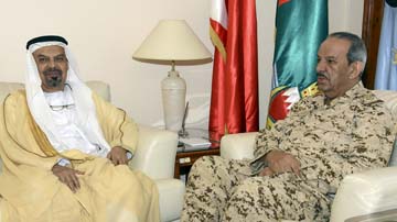 Manama, Feb. 28 (BNA): Commander-in-Chief Field Marshal Shaikh Khalifa bin Ahmed Al Khalifa today received the United Arab Emirates (UAE)'s Ambassador to Bahrain, Abdel Ridha Abdullah Al Khoury. The BDF Commander-in-Chief thanked the ambassador for his role and efforts throughout his tenure in consolidating the close brotherly relations between the United Arab Emirates and the Kingdom of Bahrain.