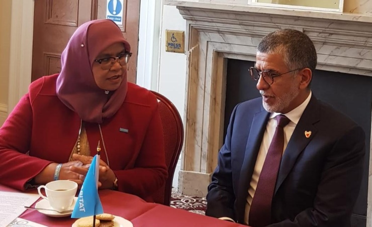 Liverpool, Nov. 2 (BNA): Shaikh Hussam bin Isa Al Khalifa, Chairman of the Committee of His Royal Highness Prince Khalifa Bin Salman Al Khalifa Award for Sustainable Development, met today with Ms. Mimouna Mohammed Sharif, Director-General of the United Nations Human Settlements Program (UN-HABITAT) on the sidelines of the International Day of Cities 2018, held in Liverpool, United Kingdom.