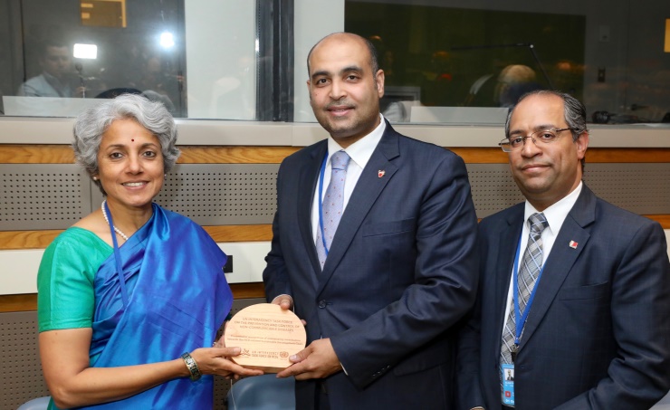 New York, Sept.27 (BNA) The Kingdom of Bahrain has won an outstanding United Nations award on Thursday. The Ministry of Health has been selected by for the United Nations Inter-Agency Task Force Award for its outstanding contribution to the achievement of sustainable development goals related to non-communicable diseases, and its great efforts and successive achievements to combat non-communicable diseases in effort to achieve the best standards of health, disease prevention and the health of citizens and residents of the Kingdom of Bahrain. The award was received, on Thursday, September 27, 2018 at the United Nations in New York, by Undersecretary of the Ministry of Health, Dr. Walid Al-Manea. Marking the occasion, Minister of Cabinet Affairs Mohammed bin Ibrahim Al Mutawa expressed his thanks and appreciation to the United Nations Organization for granting the Ministry of Health in the Kingdom of Bahrain this prestigious award as the first Gulf country to recognize its outstanding contribution to achieving sustainable development goals related to non-communicable diseases. He stressed that this award is an embodiment of the achievements of the Kingdom in the health field as a result of the commitment to the best health standards and the importance of ensuring high standards of health care services in a sustainable manner for citizens and residents as a fixed human right and advanced levels in human development. He also congratulated the Ministry of Health for achieving this remarkable achievement, which the Kingdom of Bahrain is very proud of and adds to the long series of international recognition and celebration of the Kingdom's achievements in this field, and stressed that the Kingdom of Bahrain will always support the efforts of the World Health Organization to combat chronic non-communicable diseases. “All plans and programs for the prevention of diseases are the attention and follow-up of the Government, which constantly directs the Ministry of Health to combat and cooperate with All organizations at the regional and international levels to find out about their latest developments and ways of combating them, Mr. Al Mutawa confirmed. He stressed the importance of supporting such programs, which have a major role in driving development, and focus on it through participation in the success of its objectives and commitment to ways to maintain health and prevention and avoid the risk factors, and the need for all sides to fight diseases, which is a challenge to development, in which all sectors of government, non-governmental organizations and civil society organizations, as well as members of society in all categories, are involved in dealing with non-communicable diseases. For her part, the Minister of Health, Faeqa bin Saeed Al Saleh said this award comes as a result of the sincere efforts of the non-communicable disease control team in the Ministry of Health and the relevant authorities in the Kingdom of Bahrain, to be the first Gulf country to win a United Nations team work award, access to the "unique cherry wood painting" as well as a certificate of appreciation during this high-level meeting of the United Nations General Assembly. She congratulated the Ministry's working team and members of the National Committee on the Control of Non-communicable Diseases. She said the team played a major role in achieving this achievement through continued support and encouragement from HRH the Prime Minister to the health sector in general and to the Ministry of Health in particular. And said that these outstanding projects reflect the vision of wise leadership to improve the work of the ministries of services that work for the benefit of the Bahraini citizen, the minister confirmed. She affirmed that such an honorable achievement which Bahrain is proud of comes from the efforts and efficiency of distinguished health personnel, the people of Bahrain, and the encouragement and support of His Highness the Prime Minister and His Excellency Dr. Shaikh Mohammed Bin Abdullah Al Khalifa, the President of the Supreme Council of Health, who provide all support for the important projects in the field of health. The Minister expressed her deep pride in the outstanding achievement, stressing that this remarkable achievement would not have been possible without ambitious unlimited visions, by the wise leadership, which pay particular attention to the health sector in order to improve the services provided to citizens and residents, in order to prevent diseases and promote health. The Minister of Health stressed important achievement and that the Ministry had made great strides and efforts to achieve its goal following the establishment of a multi-sectoral national committee to combat non-communicable diseases, bringing together representatives from all ministries, non-governmental organizations and the private sector in the task of the prevention of non- communicable diseases and its associated risk factors. She said the multi-sectoral national committee has cooperated extensively in the control of non - communicable diseases in the Kingdom, under supervision of the Supreme Council of Health, adding that the committee has also received considerable support and attention from the Government, and unlimited guidance from the United Nations and the World Health Organization (WHO) in order to achieve sustainable development goals. “The Kingdom of Bahrain had updated the Strategic Plan for the Prevention and Control of Non-communicable Diseases (2015-2019) on the basis of the WHO Global Plan of Action to Combat Non communicable Diseases (2013-2020) and the United Nations Declaration, enabling it to achieve many accomplishment for control of non-communicable diseases, which played a major role in obtaining the award, the minister said. The Health Minister pointed out that the health system in the Kingdom is constantly evolving and provides comprehensive health coverage for all citizens and residents. She w