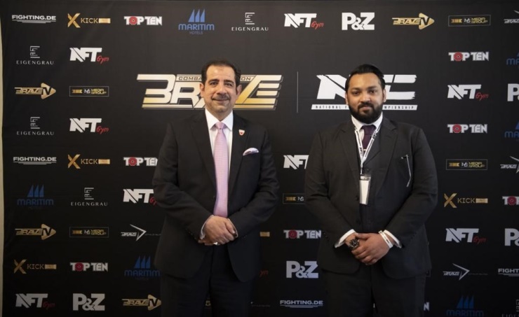 Berlin, Aug. 7 (BNA): The Ambassador of the Kingdom of Bahrain to the Federal Republic of Germany, Abdullah Abdullatif Abdullah, attended the Mixed Martial Arts Championship (Brave CF 61), founded by the First Deputy Chairman of the Supreme Council for Youth and Sport, President of the General Sports Authority and Bahrain Olympic Committee President, HH Shaikh Khalid bin Hamad Al Khalifa.