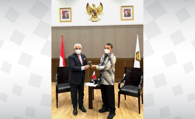 Jakarta, Mar. 1 (BNA): The Ambassador of the Kingdom of Bahrain to the Republic of Indonesia, Ahmed Abdullah Al-Hermesi Al-Hajri, met today at the headquarters of the Indonesian Ministry of Energy and Mineral Resources, the Minister of Energy and Mineral Resources of the Republic of Indonesia, Arifin Tasrif.