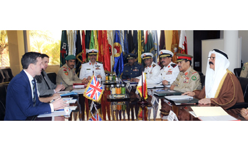 Manama, Mar. 14 (BNA): Defence Minister Lt. General Yusef bin Ahmed Al Jalahma chaired the Bahraini side in the Bahraini-British Joint Military Committee meeting which convened today at Bahrain Defence Force headquarters. The British side was chaired by Head of the International Planning and Policy for the Middle East and North Africa David Hogan-Hern. The meeting spotlighted issues aimed at further boosting defence and military cooperation between both countries. It was attended by Inspector General Major General Abdullah Hassan Al Nuaimi, Supply and Catering Director Major General Ali Saqr Al Nuaimi, Military Cooperation Director Rear Admiral Mohammed Hashim Al Sada and senior officers.