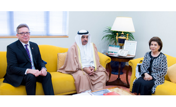 Manama, June 14 (BNA): Advisor to His Royal Highness the Prime Minister Shaikh Salman bin Khalifa Al Khalifa received at Gudaibiya Palace today outgoing German Ambassador to Bahrain Alfred Simms-Protz. He thanked him for his efforts to bolster bilateral friendly relations, wishing him success in his future duties.