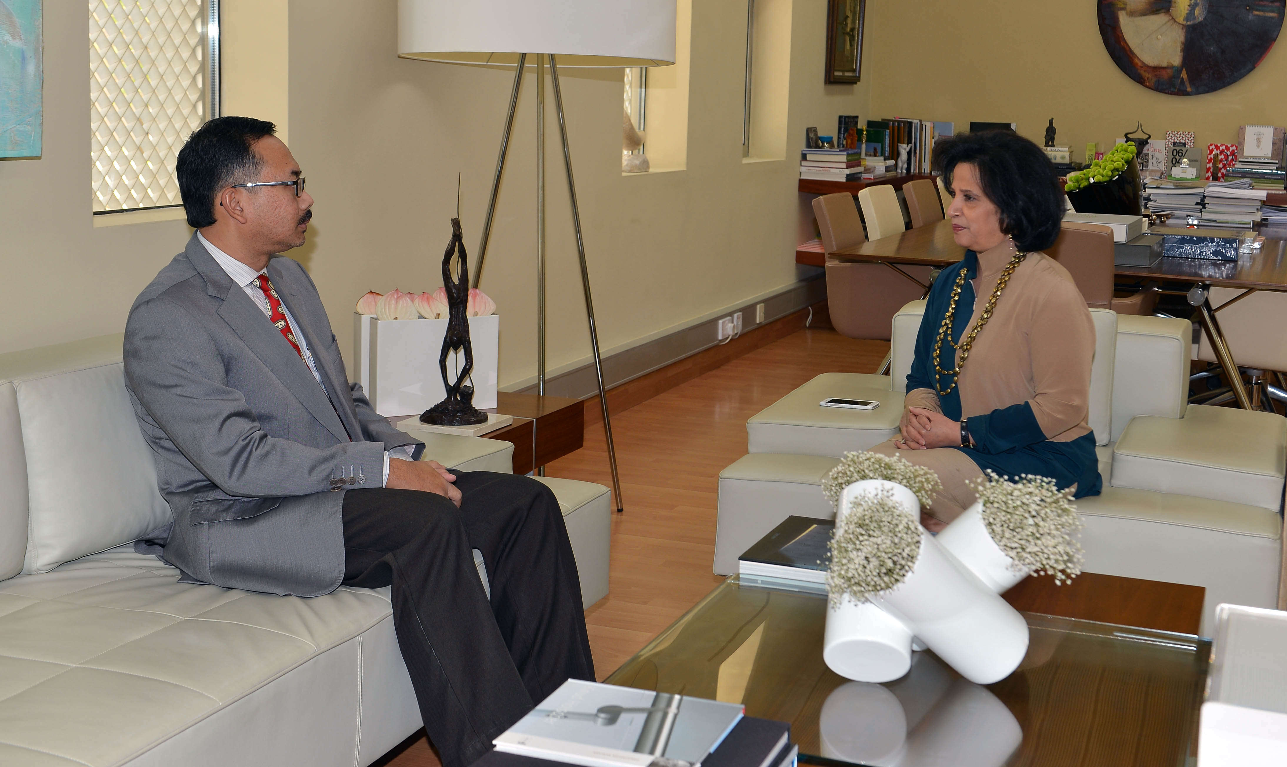 Manama, July 27 (BNA): President of Bahrain Authority for Culture and Antiquities (BACA), Shaikha Mai bint Mohammed Al Khalifa, today received the newly appointed Malaysian Ambassador to Bahrain, Agus Salim Haji, in the framework of boosting cultural relations with world countries. The BACA’s President stressed keenness to strengthen friendship relations with the people of Malaysia, praising the cultural cooperation with the Malaysian Embassy. She wished the Ambassador success in his mission in Bahrain. The Ambassador commended the BACA’s efforts to introduce Bahrain’s civilization and history to the people of the world, welcoming reinforcing cultural cooperation between the two countries.